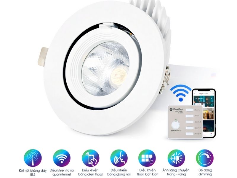 Công nghệ Smart Lighting mới: Không cần công tắc rườm rà, bạn hoàn toàn có thể thay đổi độ sáng (Dimming) và nhiệt độ màu ngay trên Smartphone. Nhờ tích hợp công nghệ Bluetooth Mesh, việc điều khiển nhiều đèn LED cùng lúc trở nên mượt mà chỉ bằng một nút chạm.