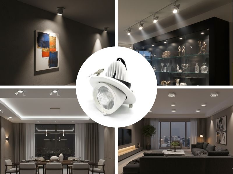 Cửa hàng & Showroom: Giúp làm nổi bật sản phẩm trưng bày ở mọi góc độ. Khi thay đổi mẫu trưng bày, bạn chỉ cần xoay nhẹ đầu đèn là xong, không cần khoan đục lại trần.